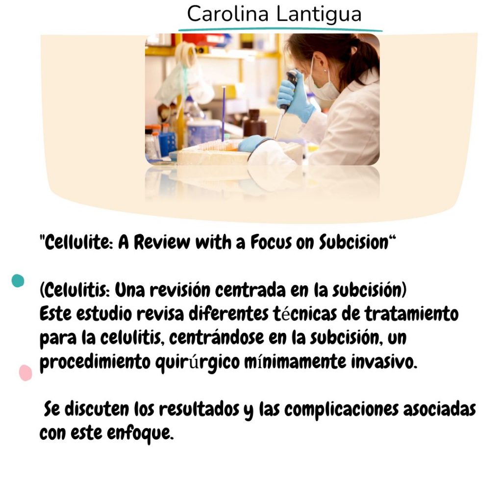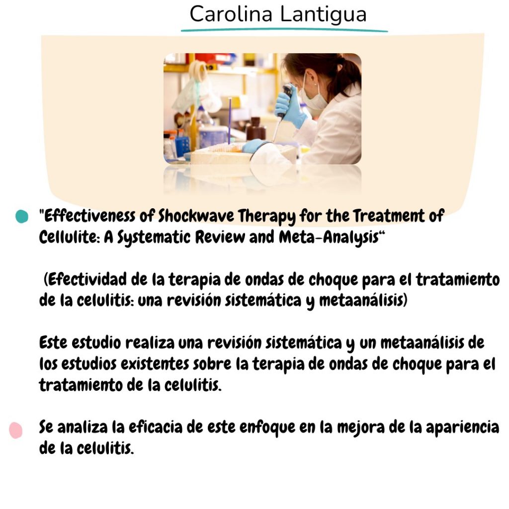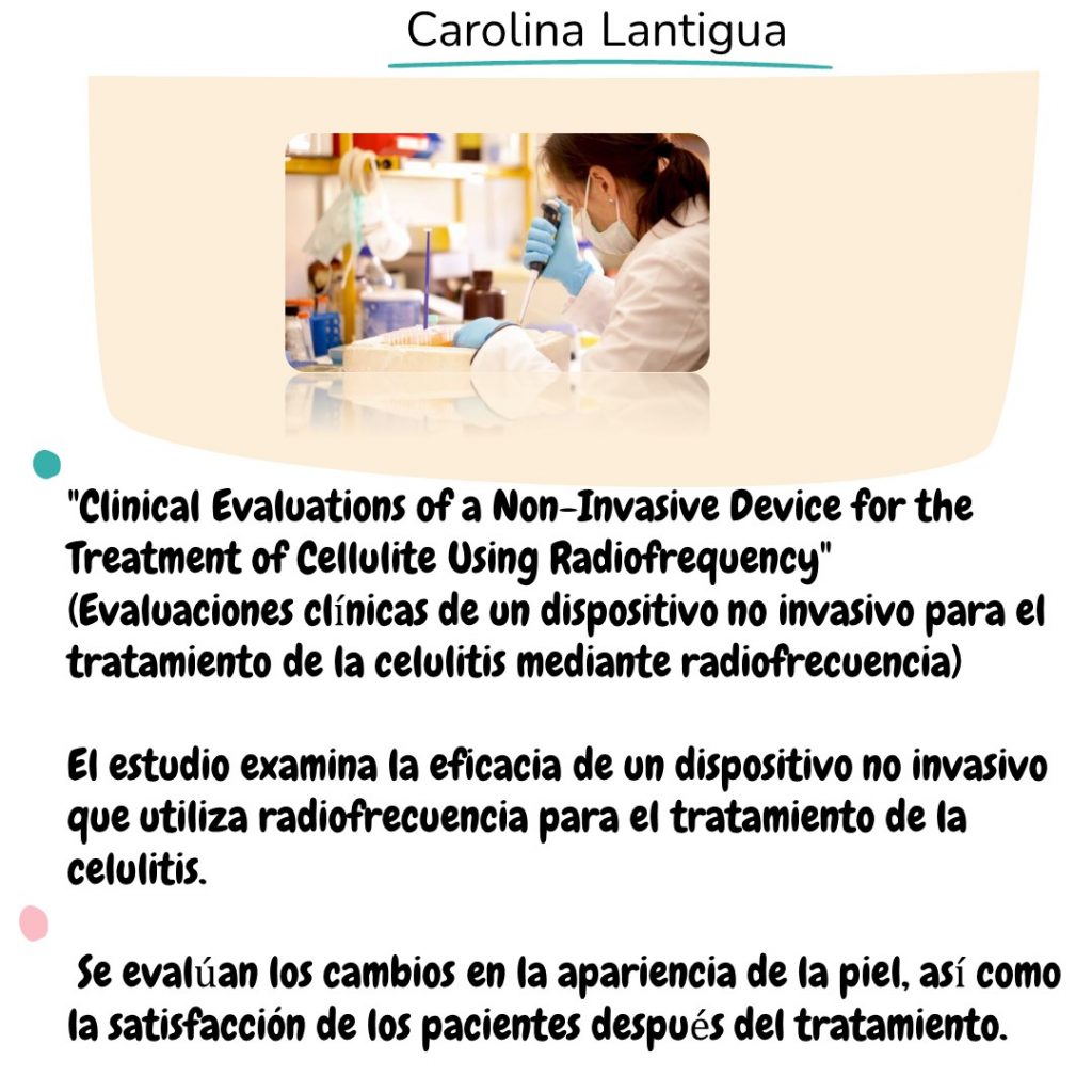 🧪”Psychological Impact of Cellulite and its Treatment: A Systematic Review” (Impacto psicológico de la celulitis y su tratamiento: una revisión sistemática) Este estudio revisa la literatura existente sobre el impacto psicológico de la celulitis en los pacientes y cómo el tratamiento de la celulitis puede influir en su bienestar psicológico. Se exploran los efectos de la celulitis en la autoestima, la imagen corporal y la calidad de vida de los individuos afectados.